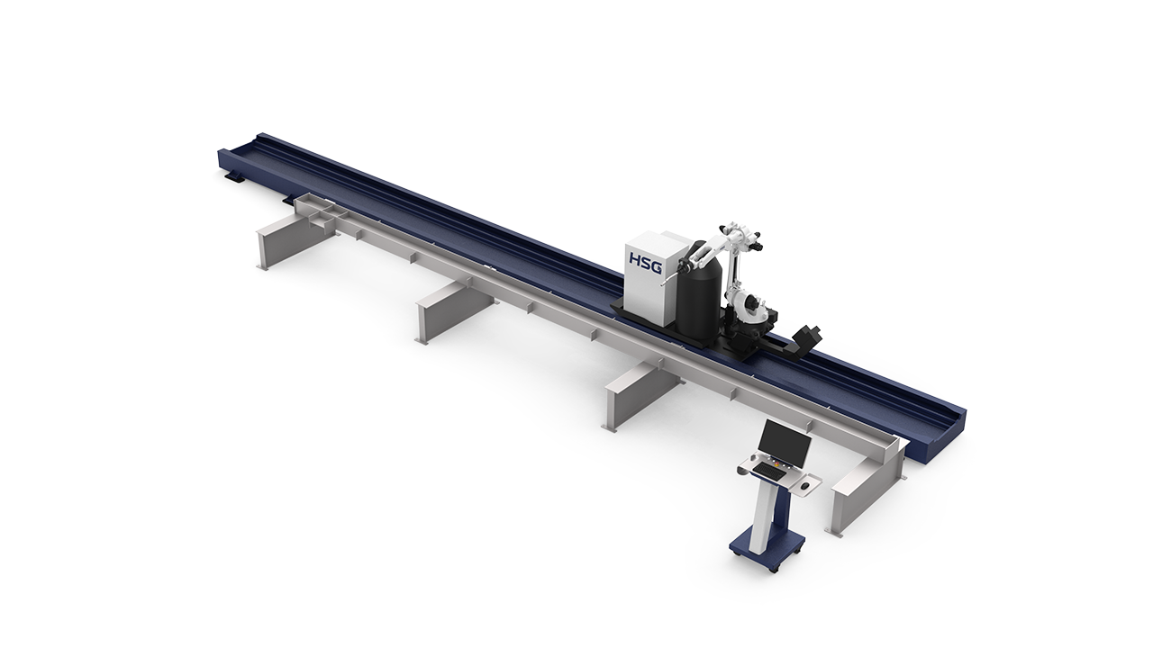 焊接機器人臂展長達2m,地軌總長12m