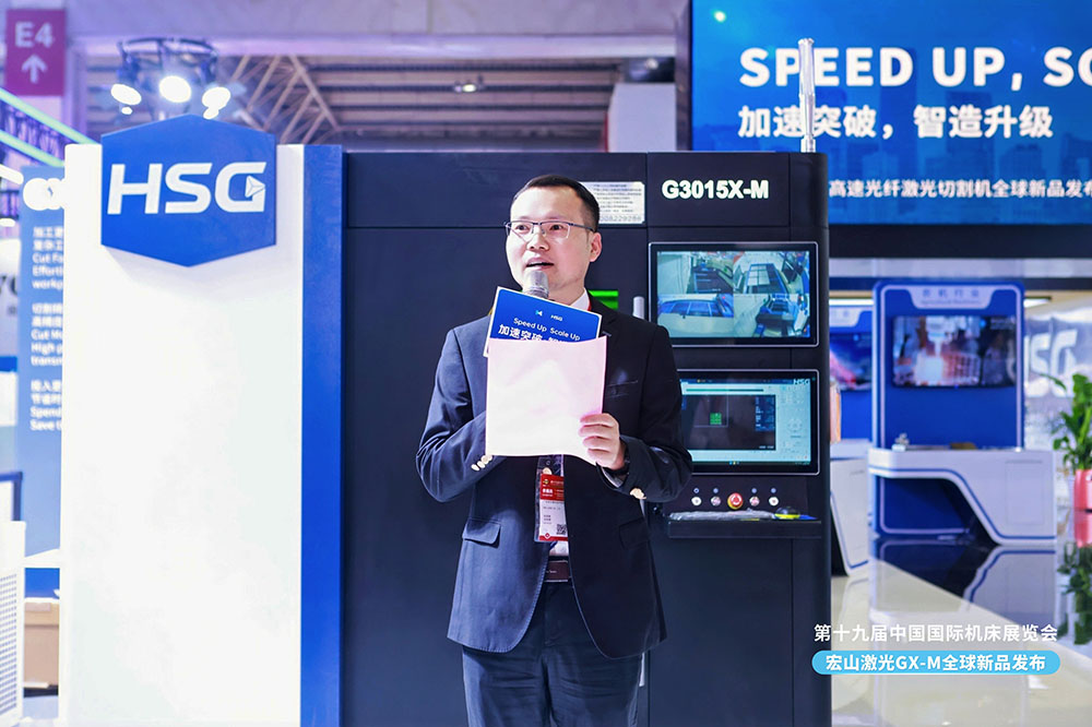 中國機(jī)床工具工業(yè)協(xié)會(huì)執(zhí)行副理事長王黎明在致辭中表示:“宏山激光推出的G3015X-M高速光纖激光切割機(jī),體現(xiàn)了中國激光裝備在性能突破與智能化方向的強(qiáng)勁創(chuàng)新力。其持續(xù)推動(dòng)綠色制造與高質(zhì)量發(fā)展方向的技術(shù)成果,不僅滿足了全球客戶對高效裝備的迫切需求,更進(jìn)一步提升了中國品牌在國際市場上的影響力與話語權(quán)。”